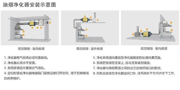 7、油煙凈化器根據發蘭與排風系統通風風管聯接,全部聯接務必密封性,避免滲油。
